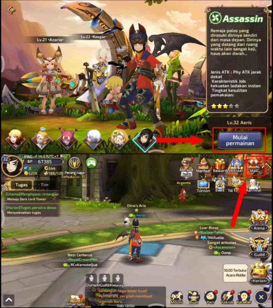 Langkah kedua, buka aplikasi Dragon Nest yang baru terinstall, masuk ke dalam permainan seperti biasa lalu tap pada icon Mall.