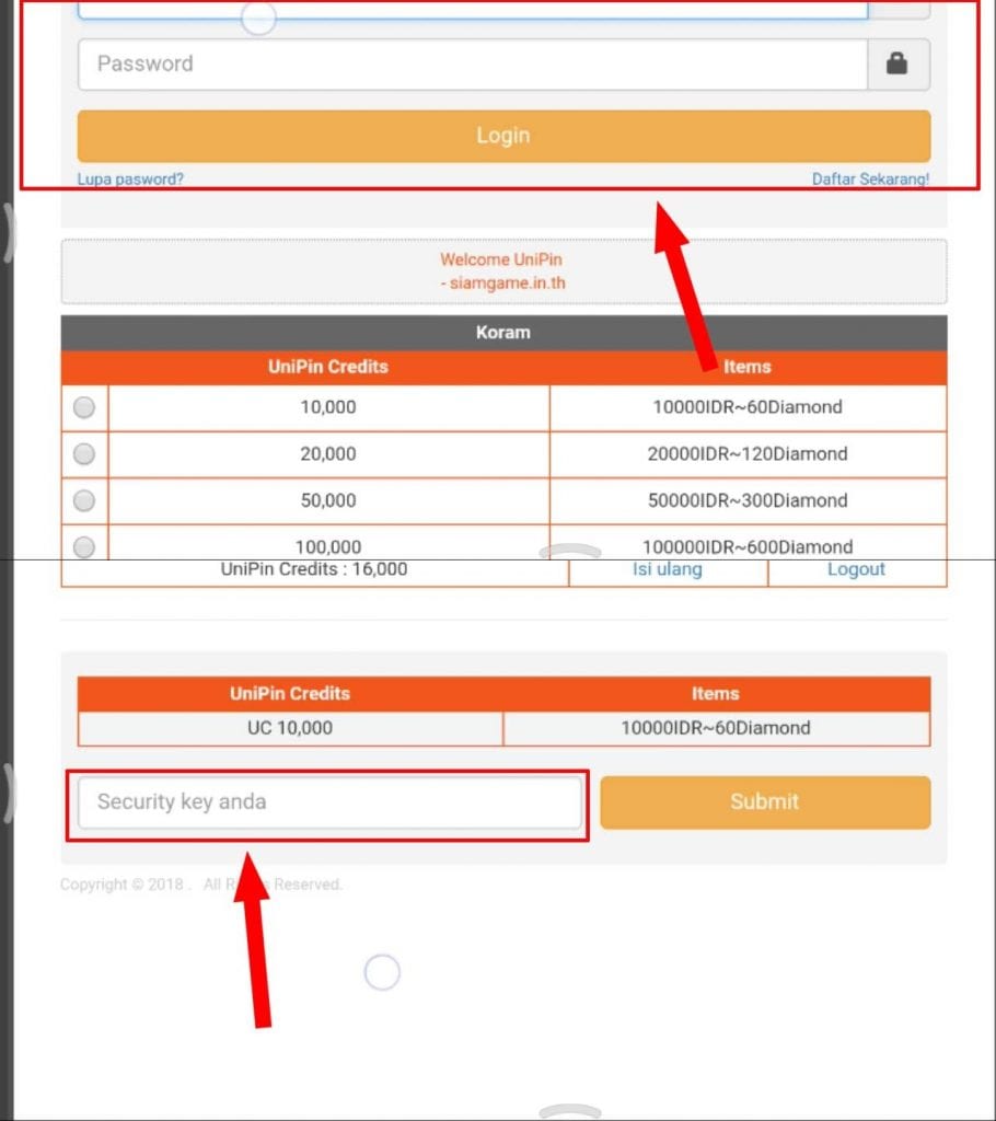 Langkah kelima, Â masuk ke akun UniPin kamu menggunakan email yang sudah kamu daftarkan sebelumnya jika sudah masukkan Security key kamu dan tap Submit.