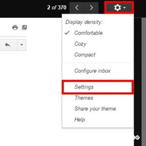 1. Pilih ikon gear di pojok kanan atas kotak email. Lalu pilih Settings.