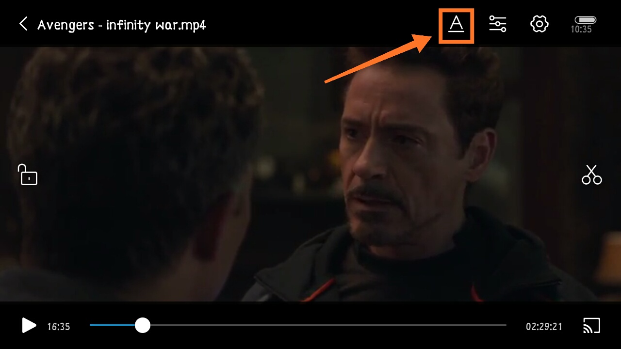 2. Setelah memutar film, Tap ikon huruf A bergaris bawah (disini kamu bisa mengatur warna dan besar kecilnya font subtitle yang akan di tampilkan).