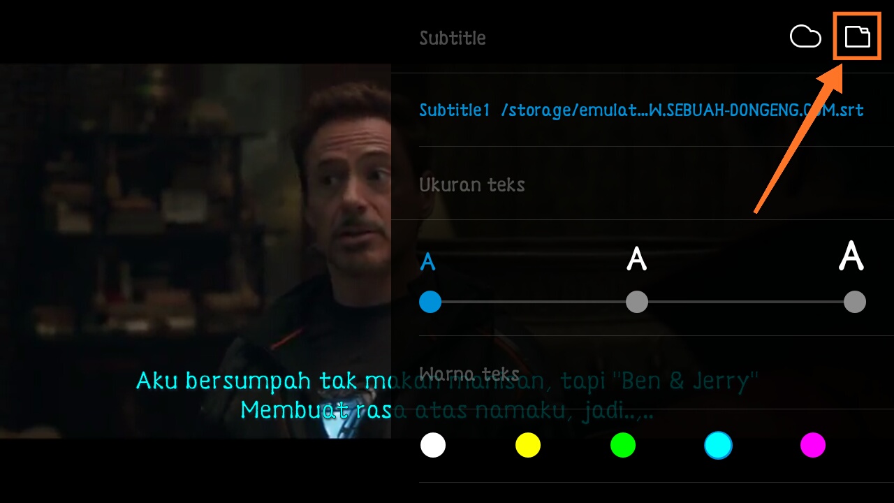 Tap ikon folder (kamu bisa mencari subtitle secara online di ikon yang ada di sebelahnya).
