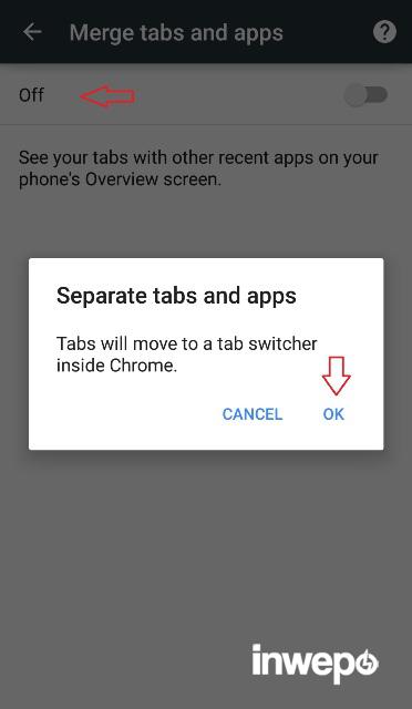 4. Kemudian matikan tombol Merge tabs and apps menjadi “off”.