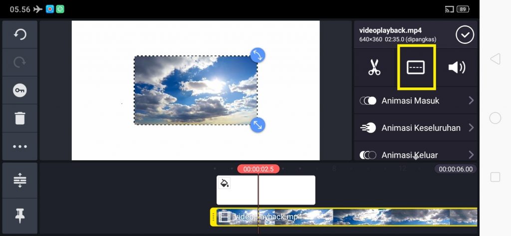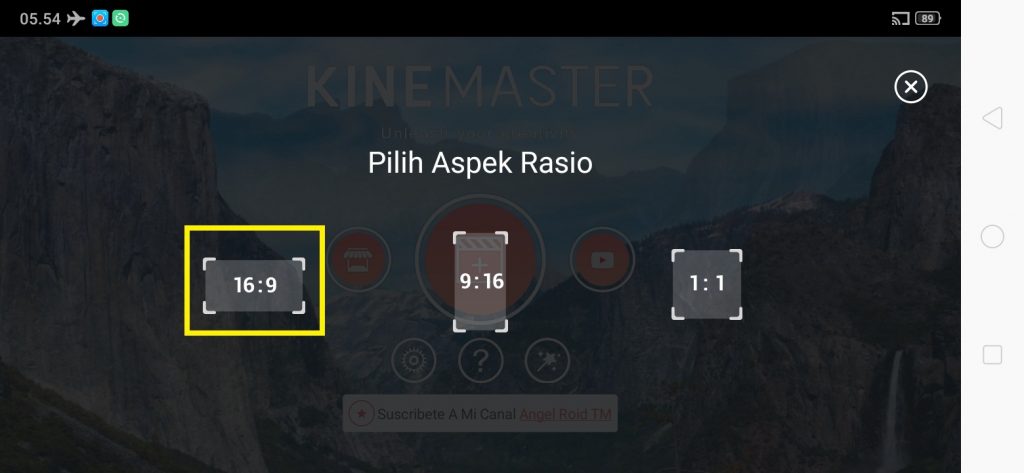 4. Pilih aspek rasio video sesuai dengan bentuk video atau foto kamu. Disini saya menggunakan aspek rasio video 16:9.