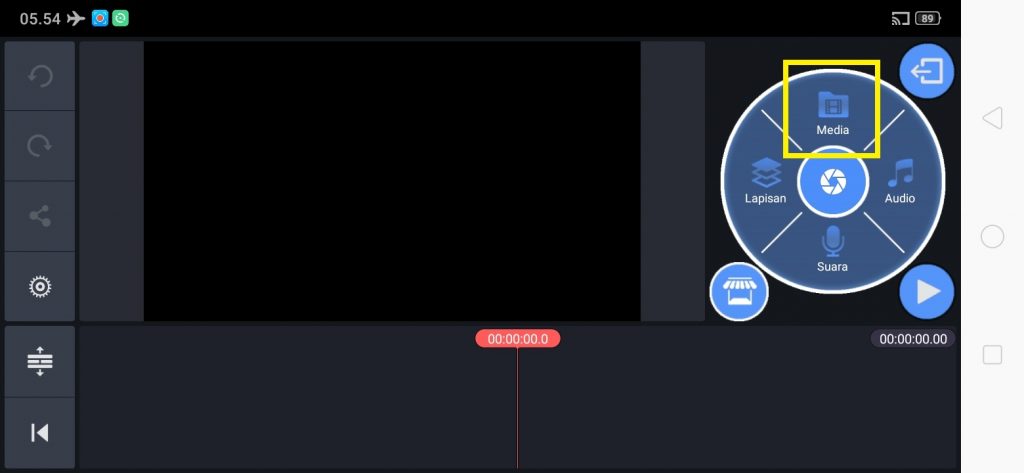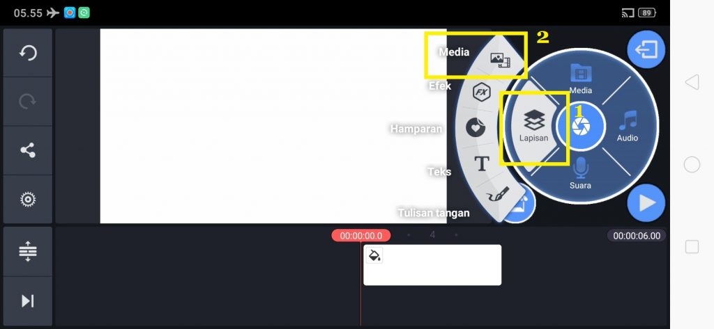 6. Sekarang kita akan memasukkan video pertama, pilih ‘Lapisan’  – klik ‘Media’.
