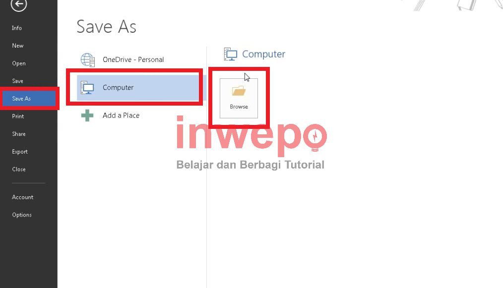 4. Kamu klik save as – computer – browse.
