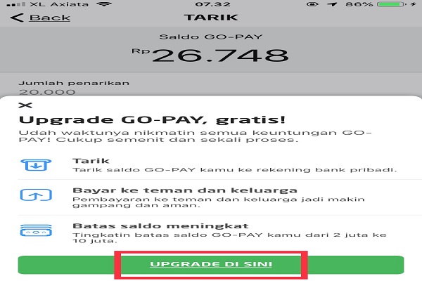 (Jika kamu belum upgrade akun GoPay kamu, maka kamu akan diminta untuk meng-upgradenya dengan menyertakan data-data sesuai data identitasmu).