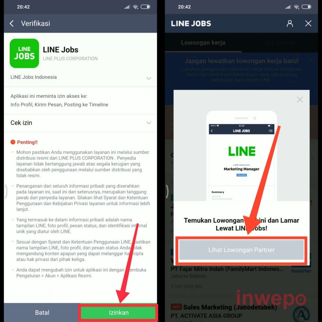 3. Tap Izinkan berikutnya tap menu Lihat Lowongan Partner.