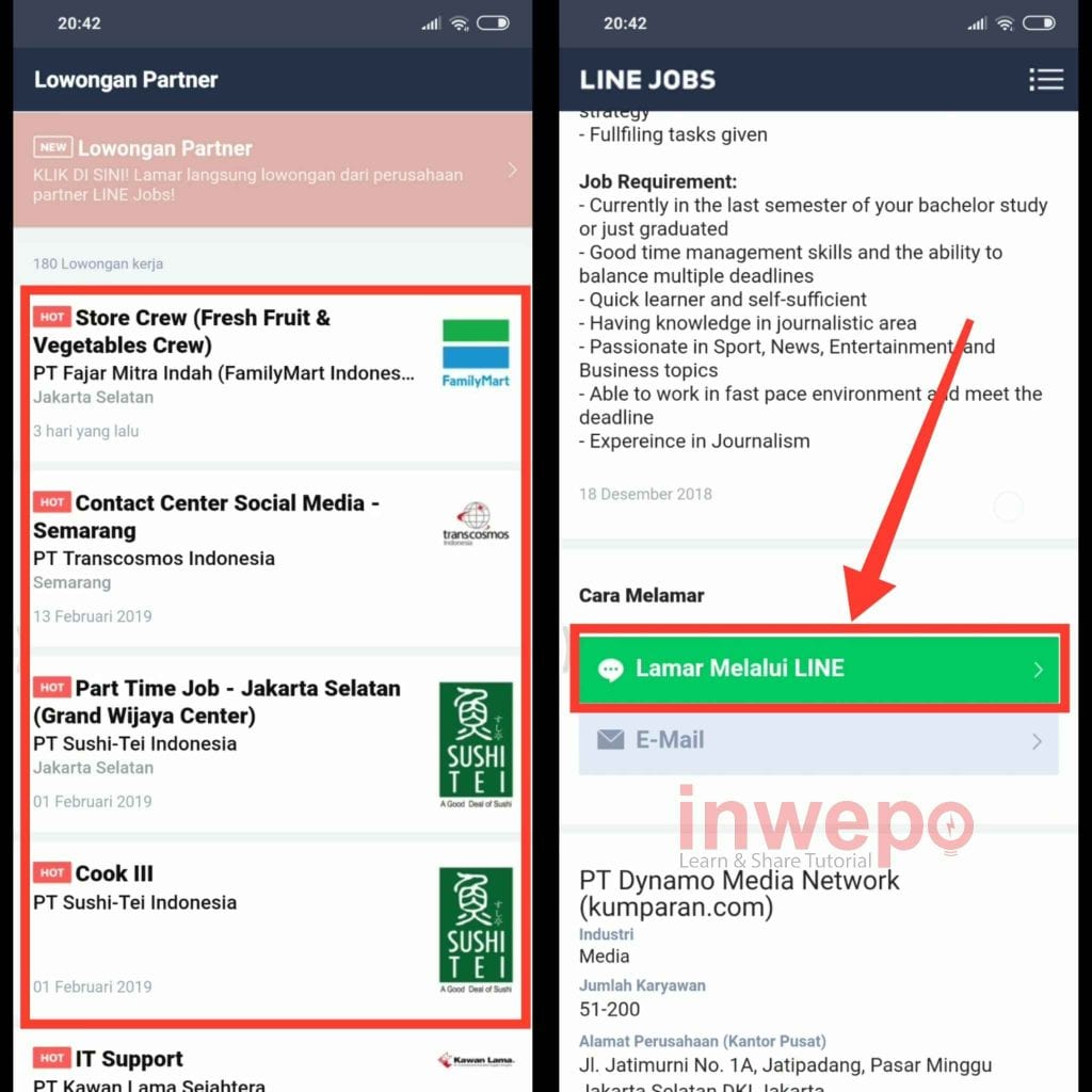 Siapapun juga tahu, jika mencari pekerjaan memang tidak semudah membalikkan telapak tangan. Akan tetapi di era digital ini kita sedikit lebih dipermudah untuk mencari lowongan pekerjaan. Nah, di artikel kali ini inwepo akan membagikan tips bagaimana caranya mencari lowongan dan melamar kerja dengan aplikasi LINE.