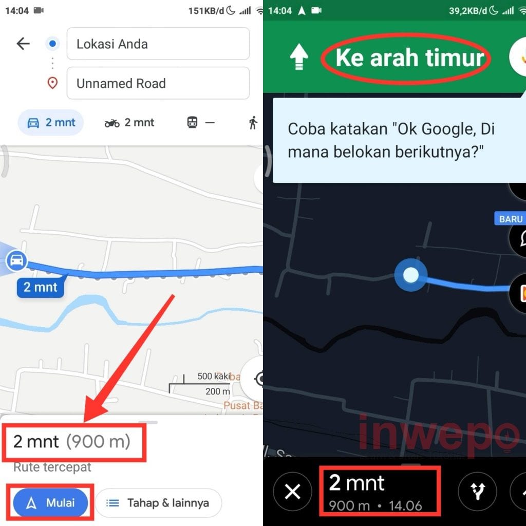 4. Kamu akan diarahkan ke maps untuk melihat jarak tempuh dan perkiraan waktu sampai. Tap mulai untuk mengikuti navigasi dari Google.
