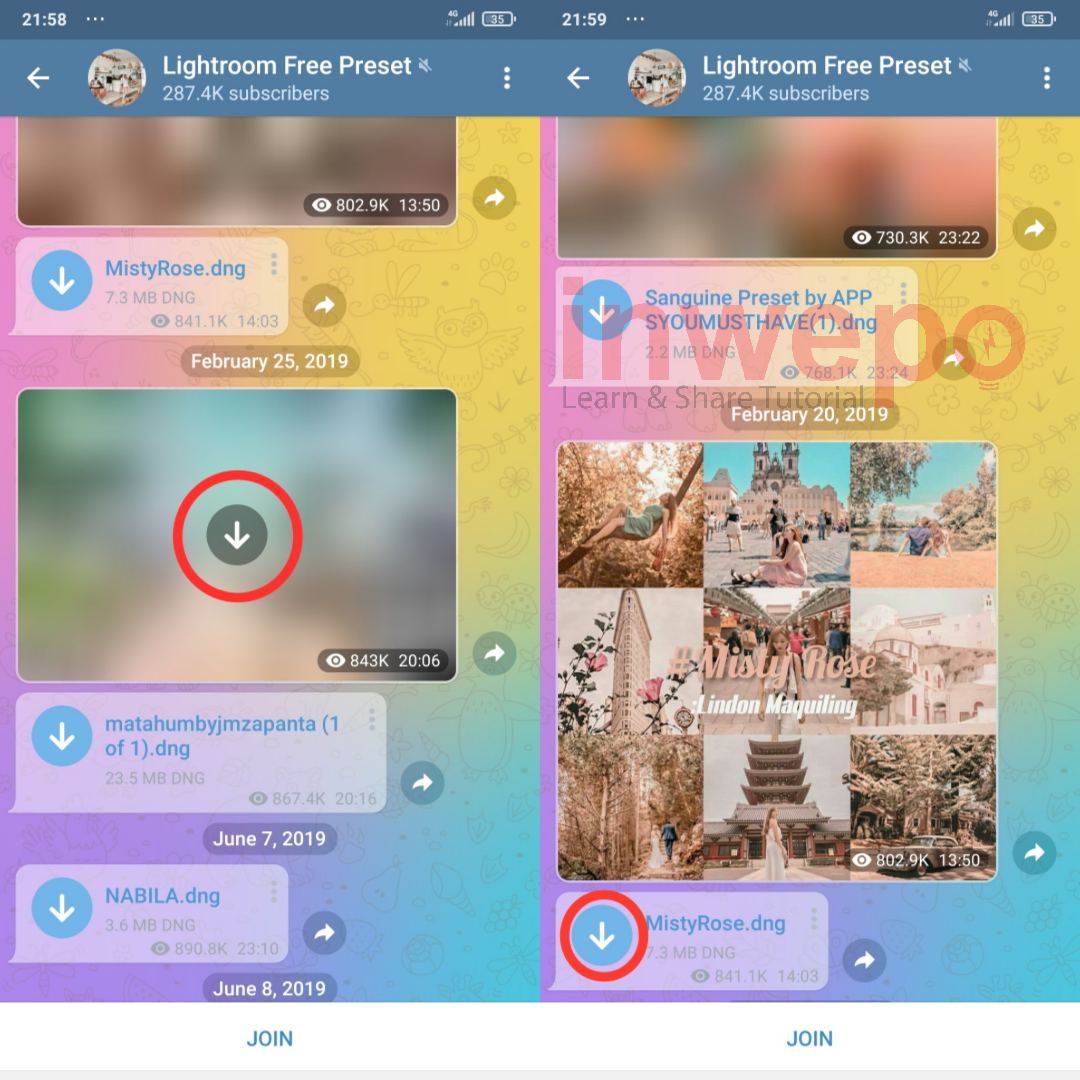 Buat yang tak terlalu suka dengan cara manual, banyak yang memilih untuk menggunakan jalan pintas menggunakan preset. Diluar sana ada banyak sekali preset yang bisa kita unduh secara gratis maupun berbayar. Namun sesuai pembahasan diatas kita akan coba untuk menggunduh preset – preset lightroom dengan hanya menggunakan aplikasi telegram.
