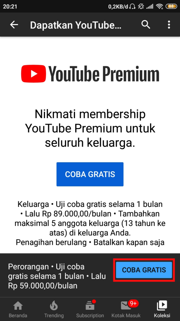 Pada artikel kali ini, kita akan mencoba untuk berlangganan Youtube Premium secara gratis melalui kanal masa uji coba yang disediakan oleh pihak Youtube tersendiri.
