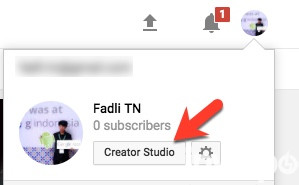 Jika sudah meng-upload 2 video, kemudian masuk ke menu Creator Studio. Di pojok kanan atas, klik icon profil – Creator Studio.