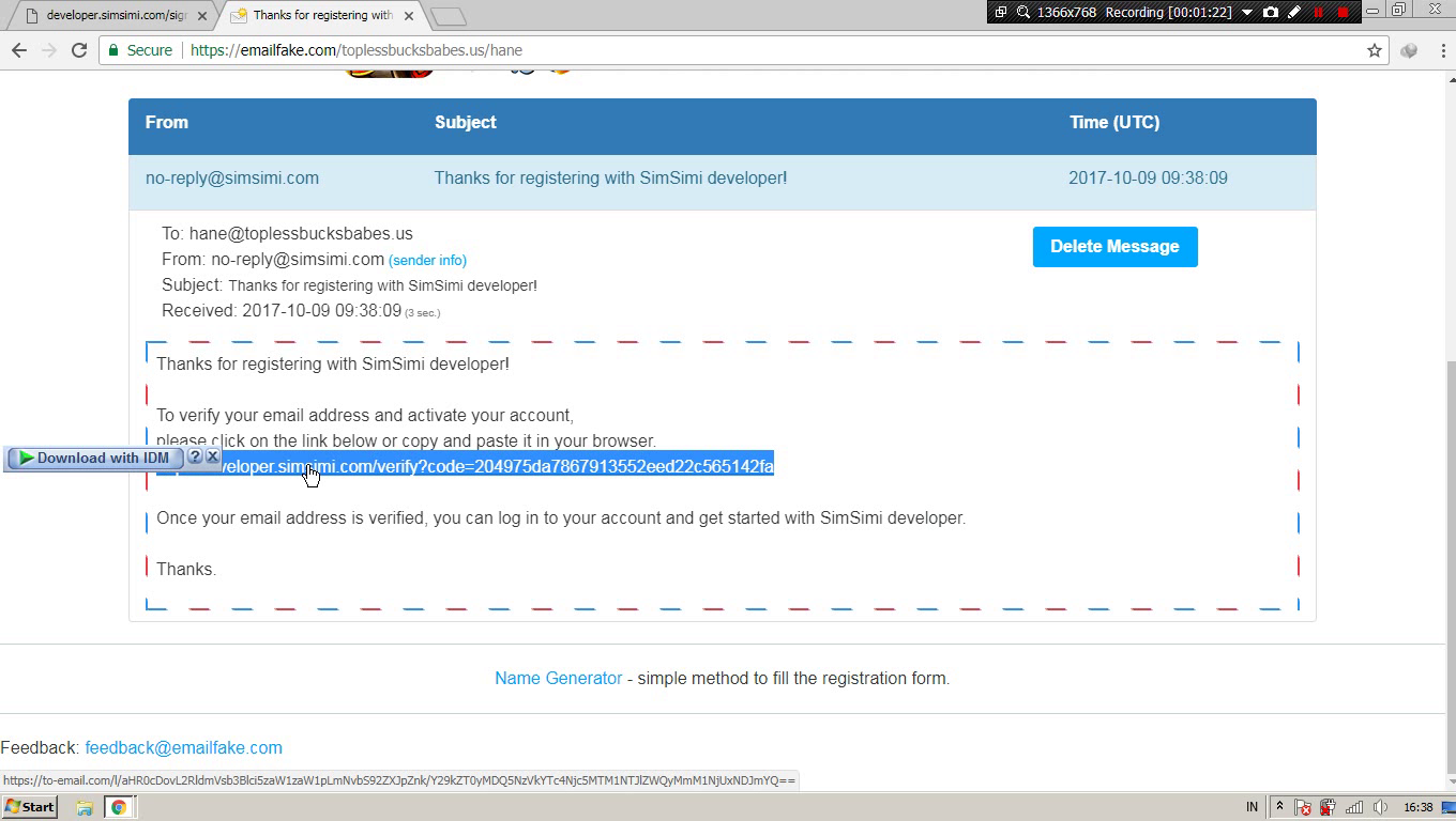 4. Selanjutnya buka email yang kamu gunakan untuk mendaftar akun SimSimi sebelumnya dan periksa pesan masuk dari Developer Simsimi, lalu klik tautan url atau copy url yang terdapat pada email tersebut ke tab address bar browser.