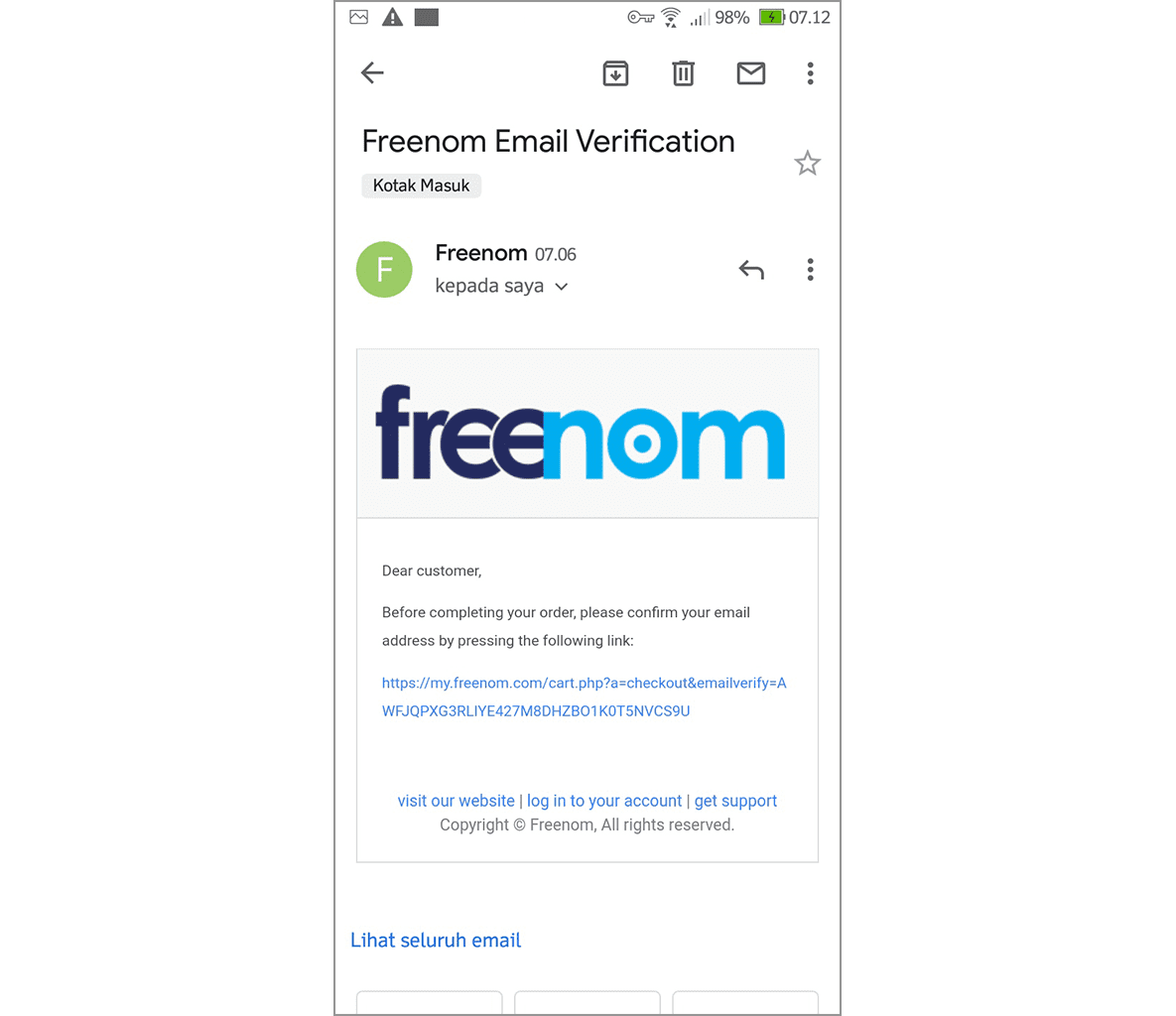 7. Cek email yang baru saja didaftarkan, kemudian ketuk tautan yang tertera di dalamnya.
