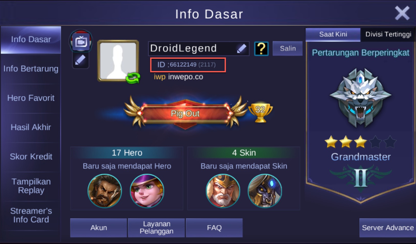 1. Siapkan user ID akun Mobile Legends kamu. Caranya: Masuk ke menu profil – Info Dasar. Contoh ID: 66122149(2117)