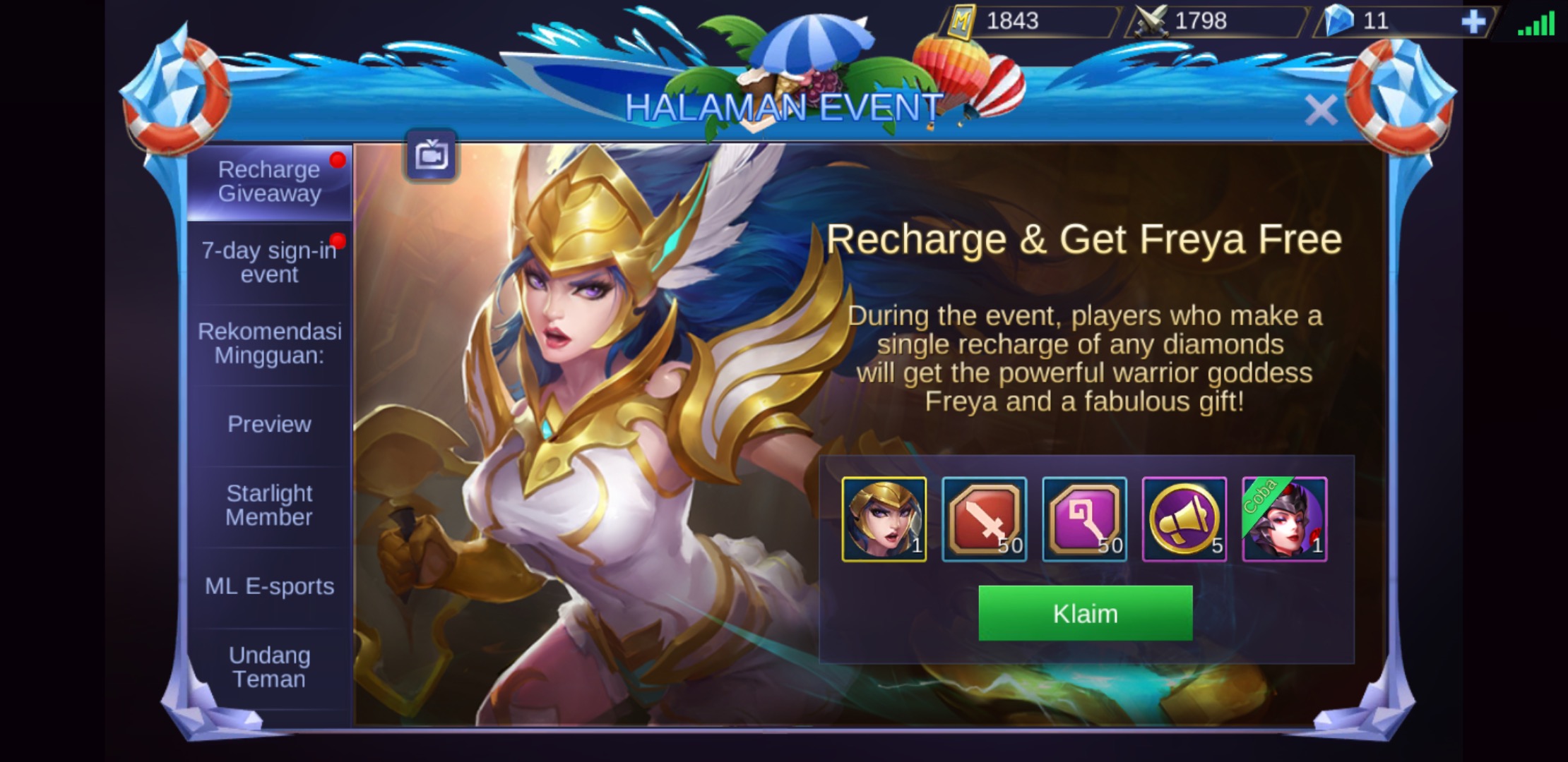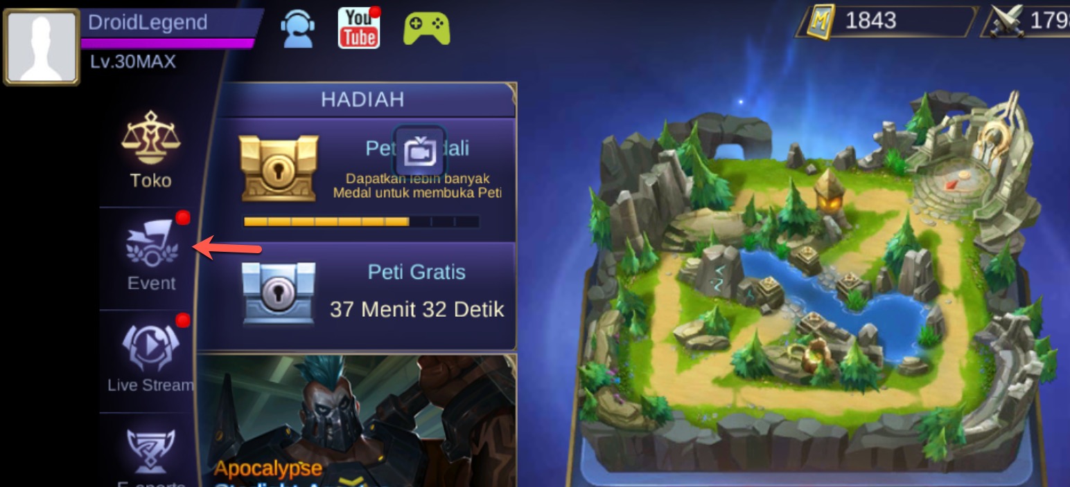 10. Silakan buka kembali game Mobile Legends kamu akan melihat diamond sudah terisi lalu buka menu Event.