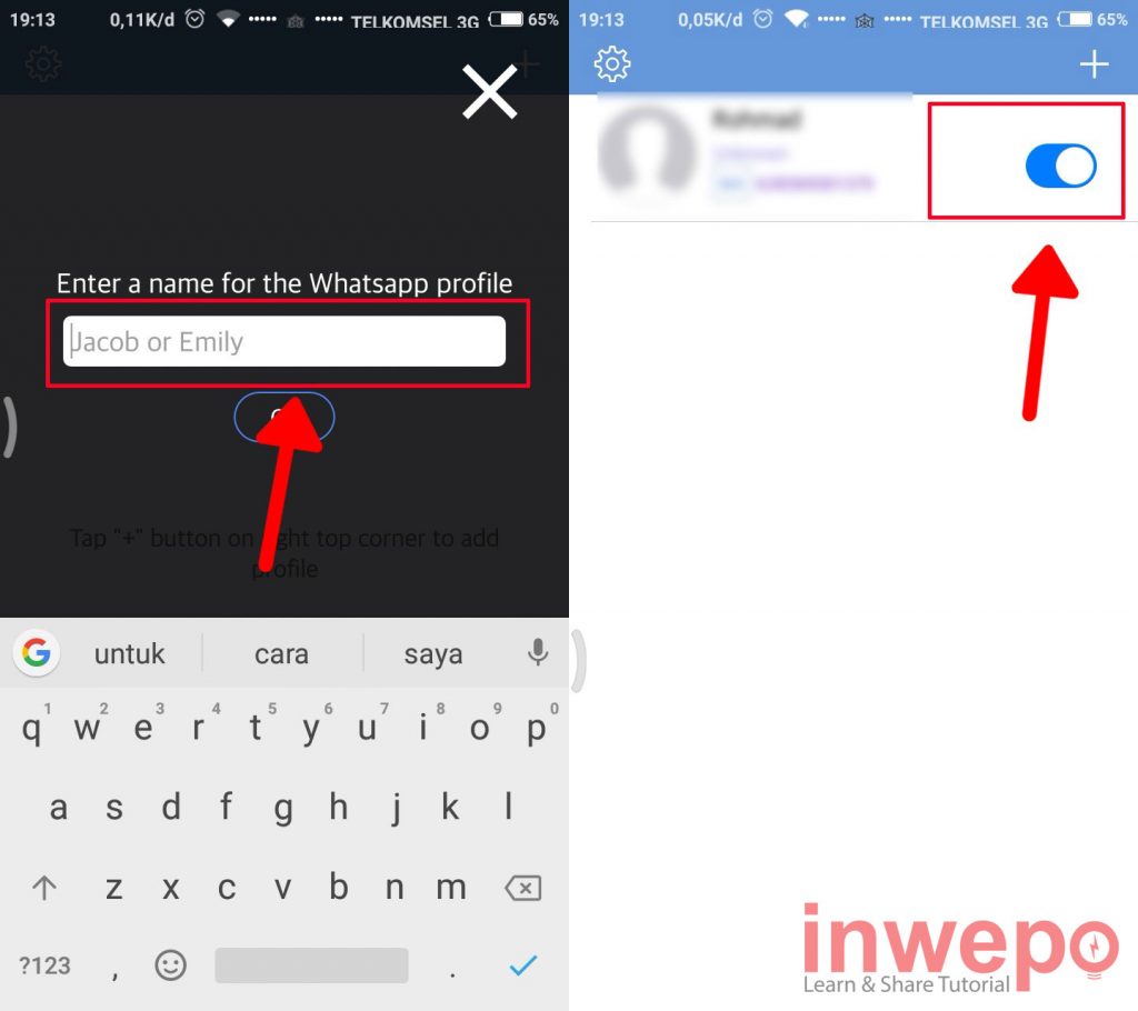 4. Jangan lupa untuk menambahkan nama WhatsAppnya juga kemudian akan muncul icon bahwa nomor teman telah berhasil ditambahkan dan notifikasi berhasil diaktifkan. Untuk mematikan tinggal menggeser tombol yang berwarna biru.