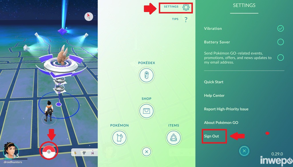 1. Jika kamu sudah terlanjur memainkan dan ingin mencoba mendapatkan Pikachu ditahap awal kamu harus keluar akun sign out dan membuat akun baru. cara sign out: sentuh pokeball – settings – sign out.