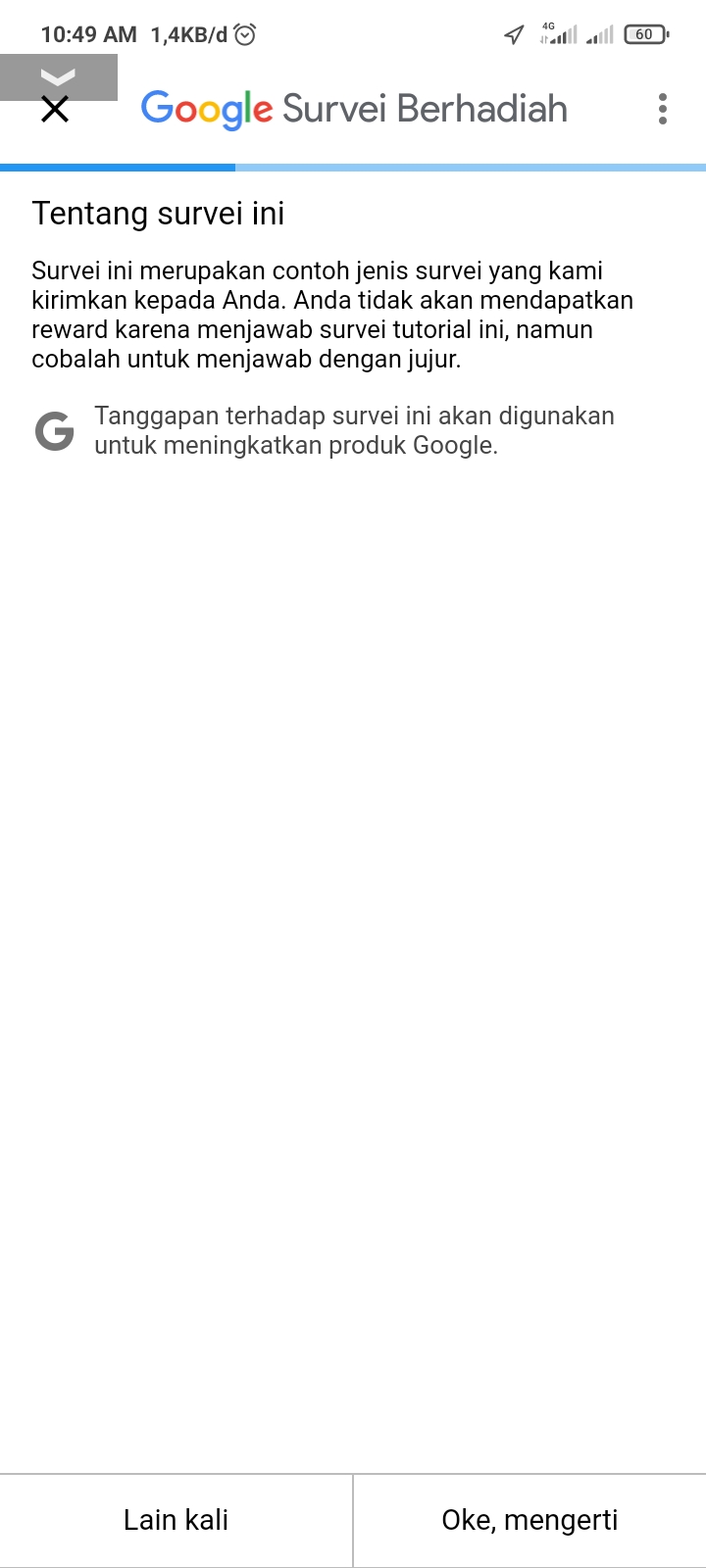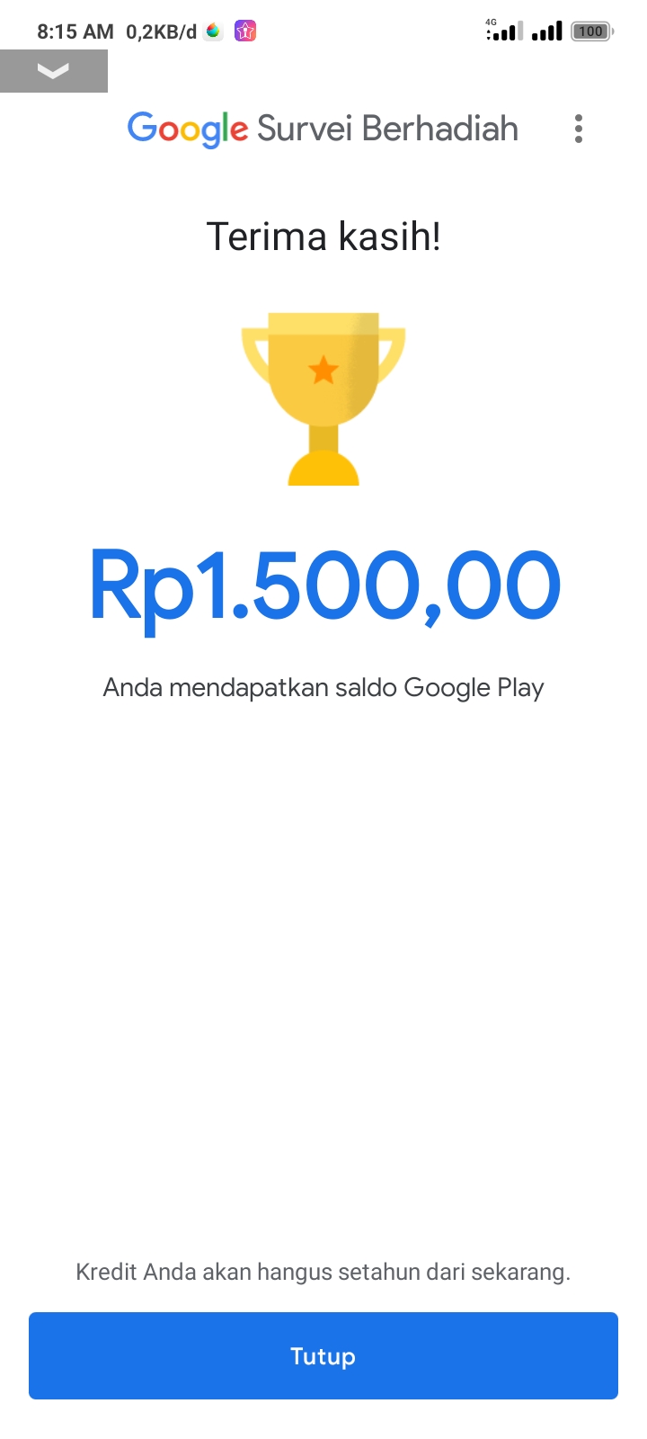 3. Tunggu pemberitahuan dari aplikasi bahwa survei telah tersedia untuk mendapatkan hadian credit google play.
