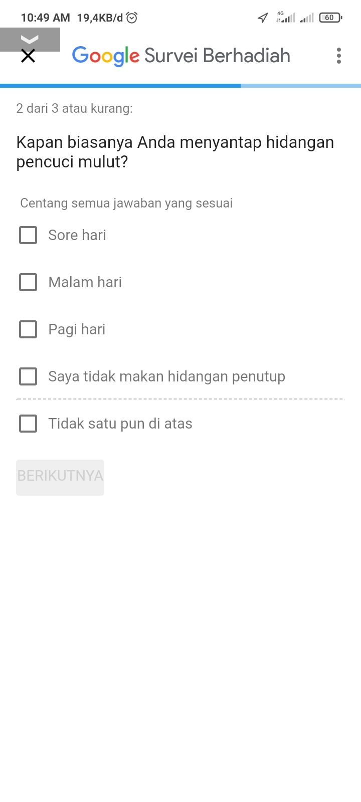 4. Setelah mendapatkan pemberitahuan, isi pertanyaan yang tersedia sesuai dengan jawaban yang dibutuhkuan sampai selesai.