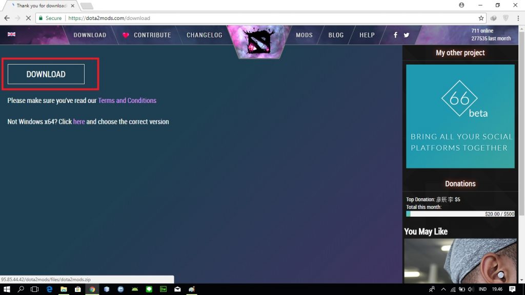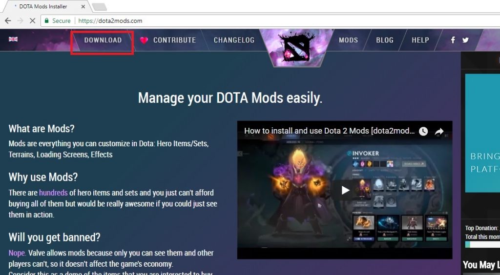 1. Buka situs dota2mods.com untuk download software nya.
