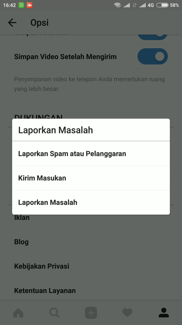 3. Masuk ke opsi atau pengaturan, cari menu “Laporkan Masalah“.