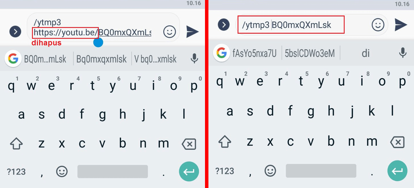 10. Lalu hapus teks https://youtu.be/ tersebut, dan hasilnya akan seperti gambar di bawah bagian kanan.