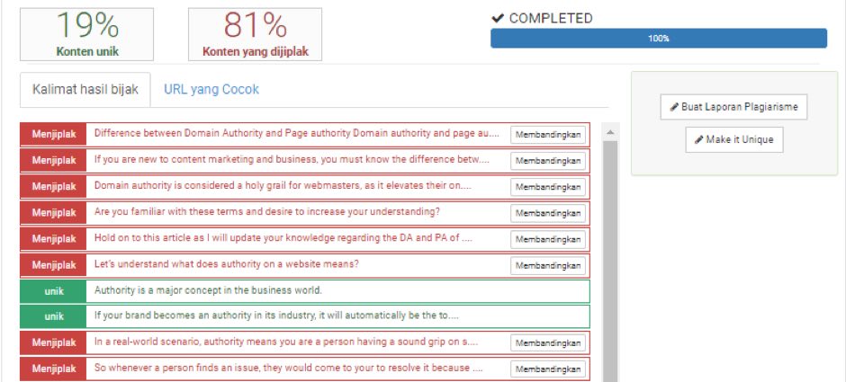 Untuk membuka pintu itu, Anda perlu mencari tahu apakah konten Anda memiliki persentase plagiarisme di dalamnya atau tidak.