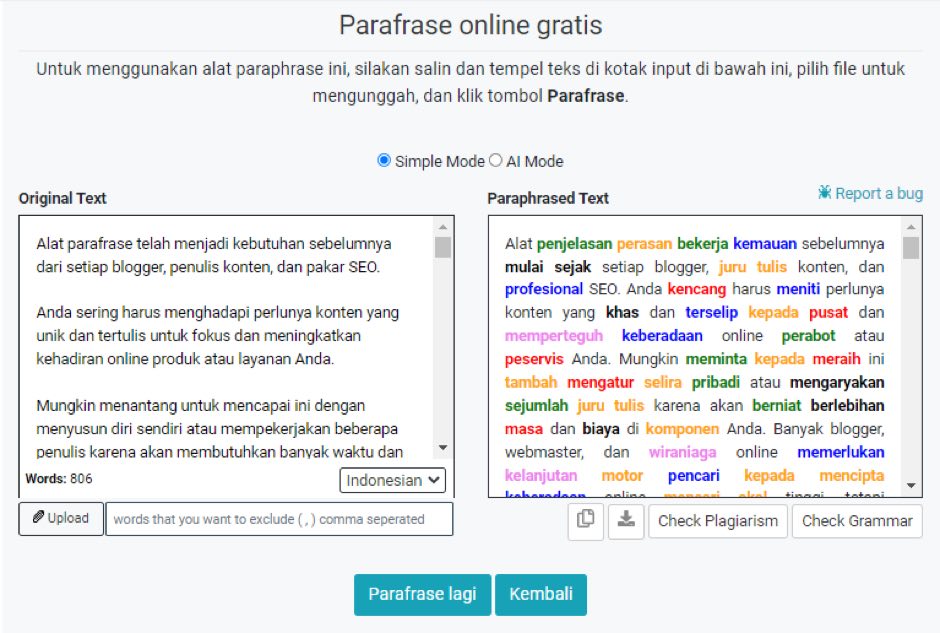 Alat parafrase yang tepat akan memberi Anda opsi untuk mengubah nada konten, bahasa, mode sederhana atau AI, dll.