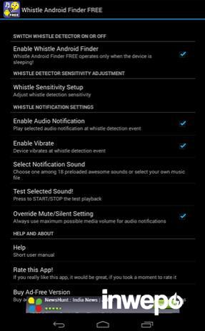2. Jalankan aplikasinya, lalu centang “enable whistle android finder”.