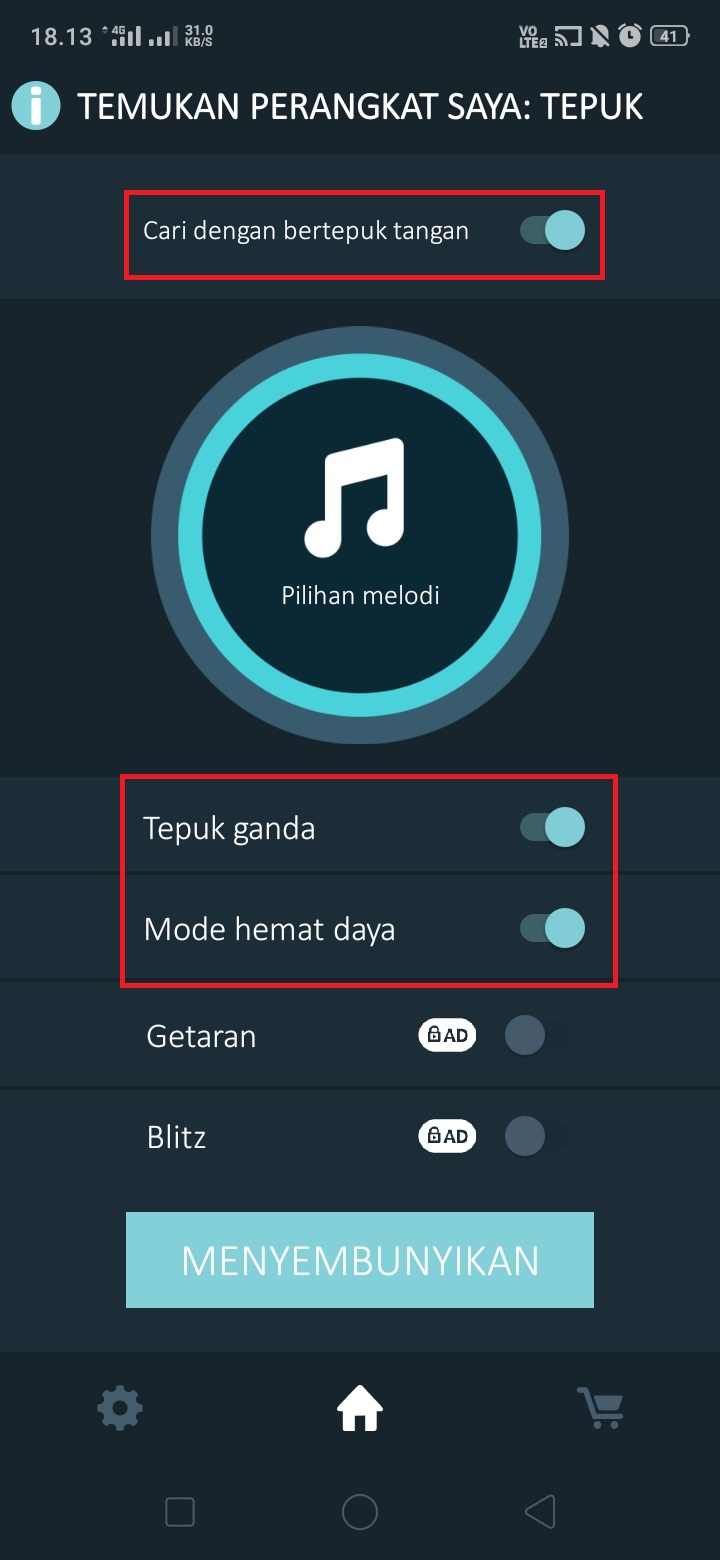 3. Aktifkan menu ‘Cari dengan bertepuk tangan’, ‘Tepuk ganda’, dan ‘Mode hemat daya’. Untuk menambah getaran dan blitz saat bertepuk tangan, kamu bisa beralih ke versi Premium.