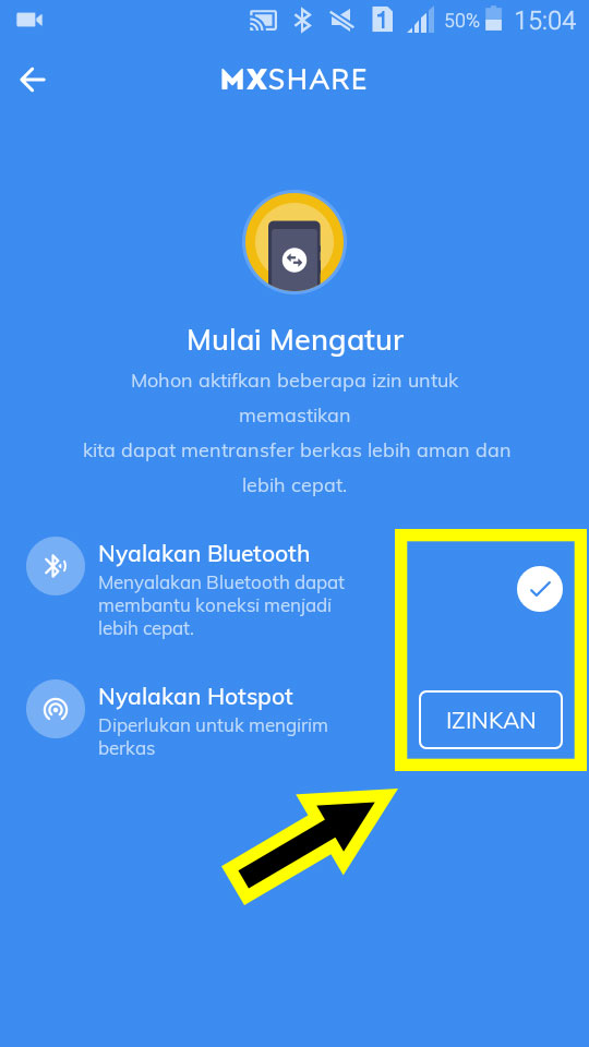 3. Nyalakan pengaturan Bluetooth dan Hotspot pada pengaturan transfer berkas.