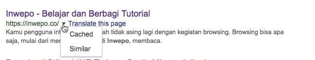 2. Dari hasil penelusuran, selanjutnya klik tanda panah dan pilih Cached.