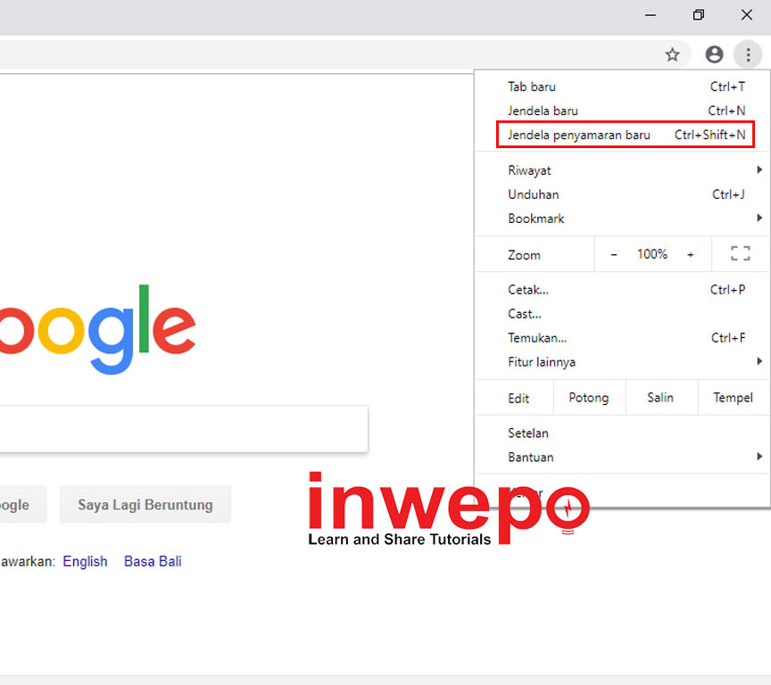 1. Buka Google Chrome – klik ikon tiga titik – klik jendela penyamaran baru. Setelah terbuka jendela penyamaran baru, silakan jelajahi internet dengan mode privasi.