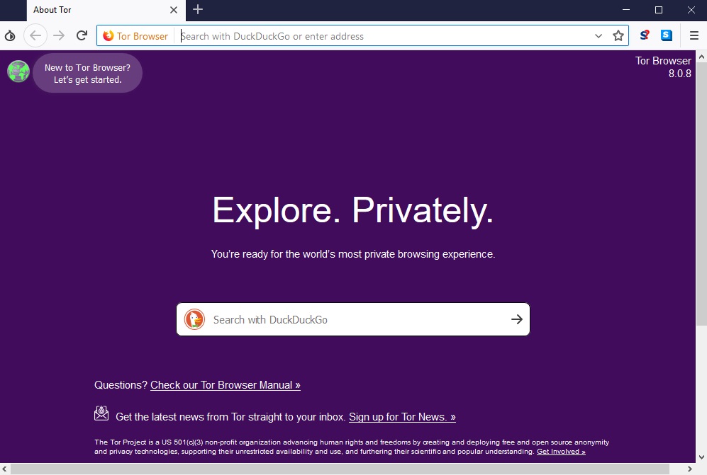 5. Jika loading konfigurasi sudah selesai, kamu akan diarahkan ke Home Page atau tampilan awal dari Tor Browser.