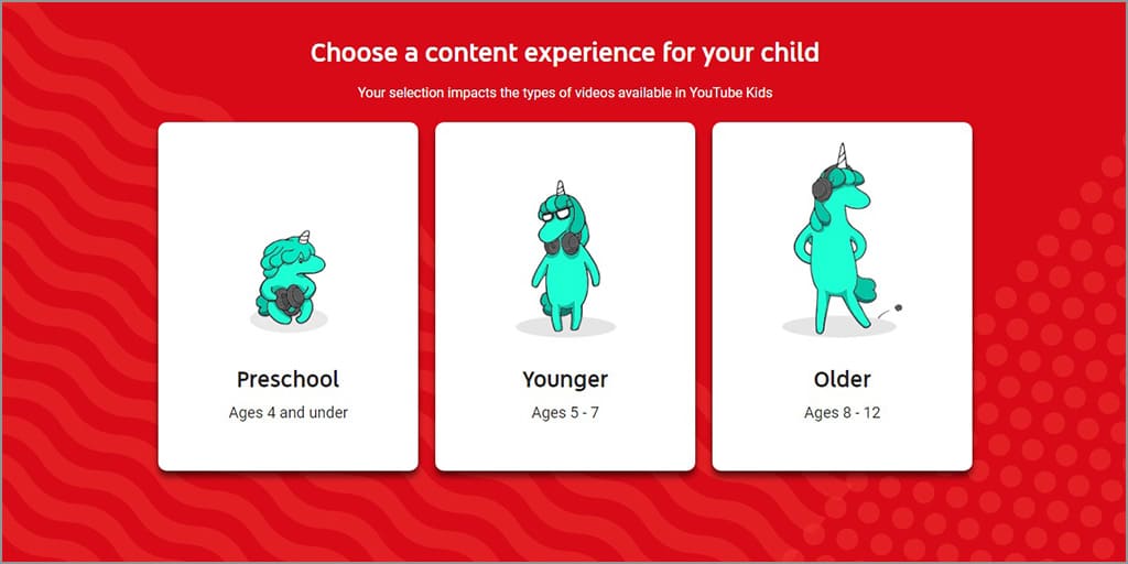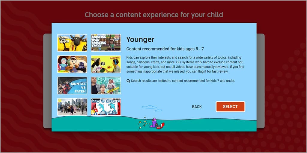 8. Pilih konten anak sesuai umurnya. Pada tutorial kali ini yang dipilih adalah younger.