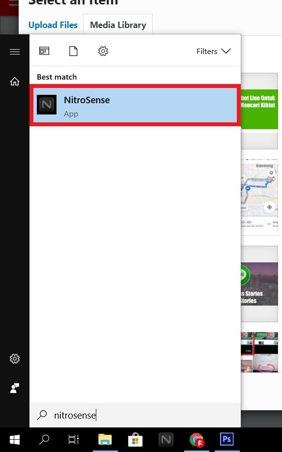 1. Klik pada Start menu lalu kamu cari dan buka aplikasi bernama nitrosense di kolom pencarian.