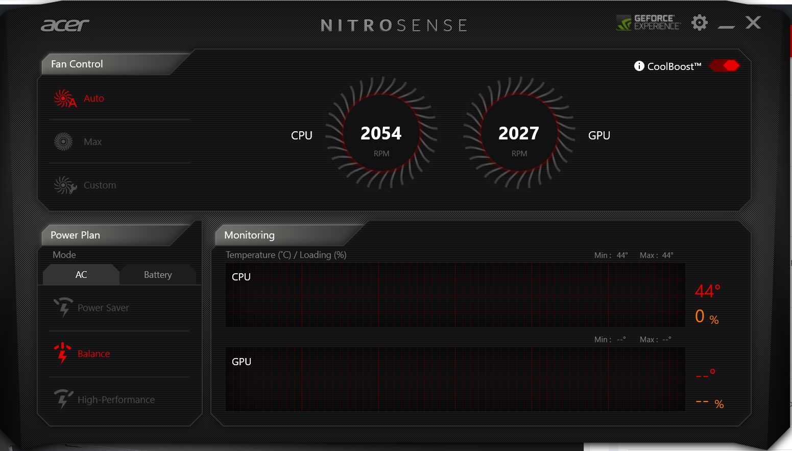 2. Jika jendela Nitrosense sudah muncul, kamu pastikan bahwa pada bagian CoolBoOst yang berada di sudut kanan atas dalam keadaan menyala atau berwarna merah.