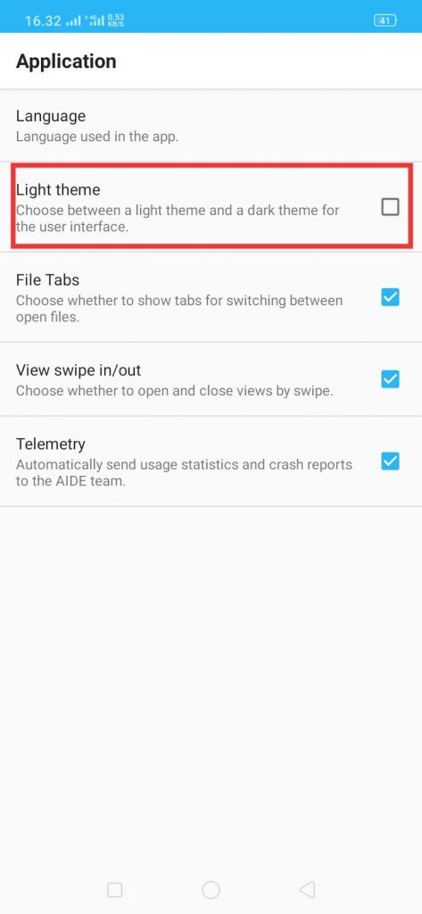 Demikian. Cara mengaktifkan dark mode di AIDE Android. Selamat mencoba.