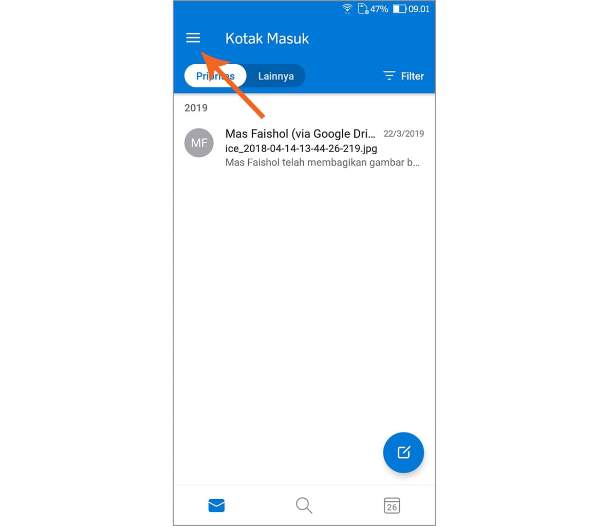 1. Silakan buka aplikasi Outlook yang ada di smartphone kamu.