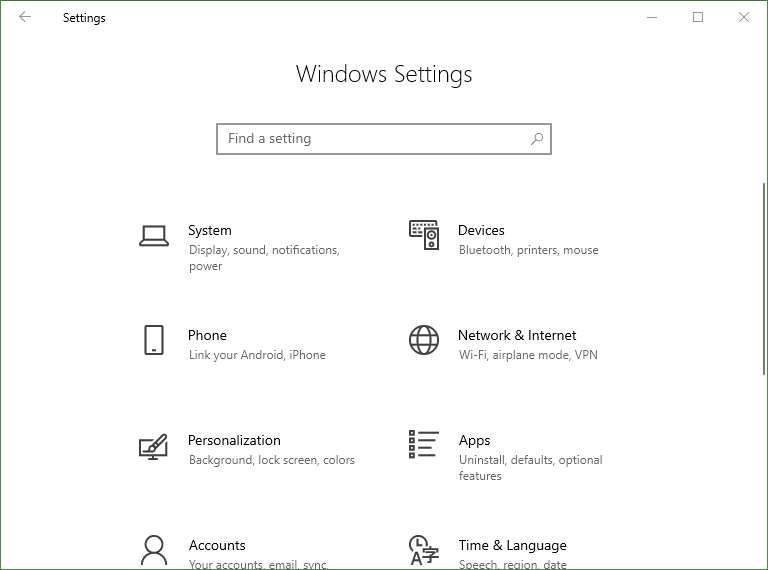 Kita dapat membukanya dengan cara menekan WIN + I atau meng-klik logo gear yang berada pada Start Windows. Nantinya, akan muncul halaman baru berupa pilihan pengaturan pada Windows.