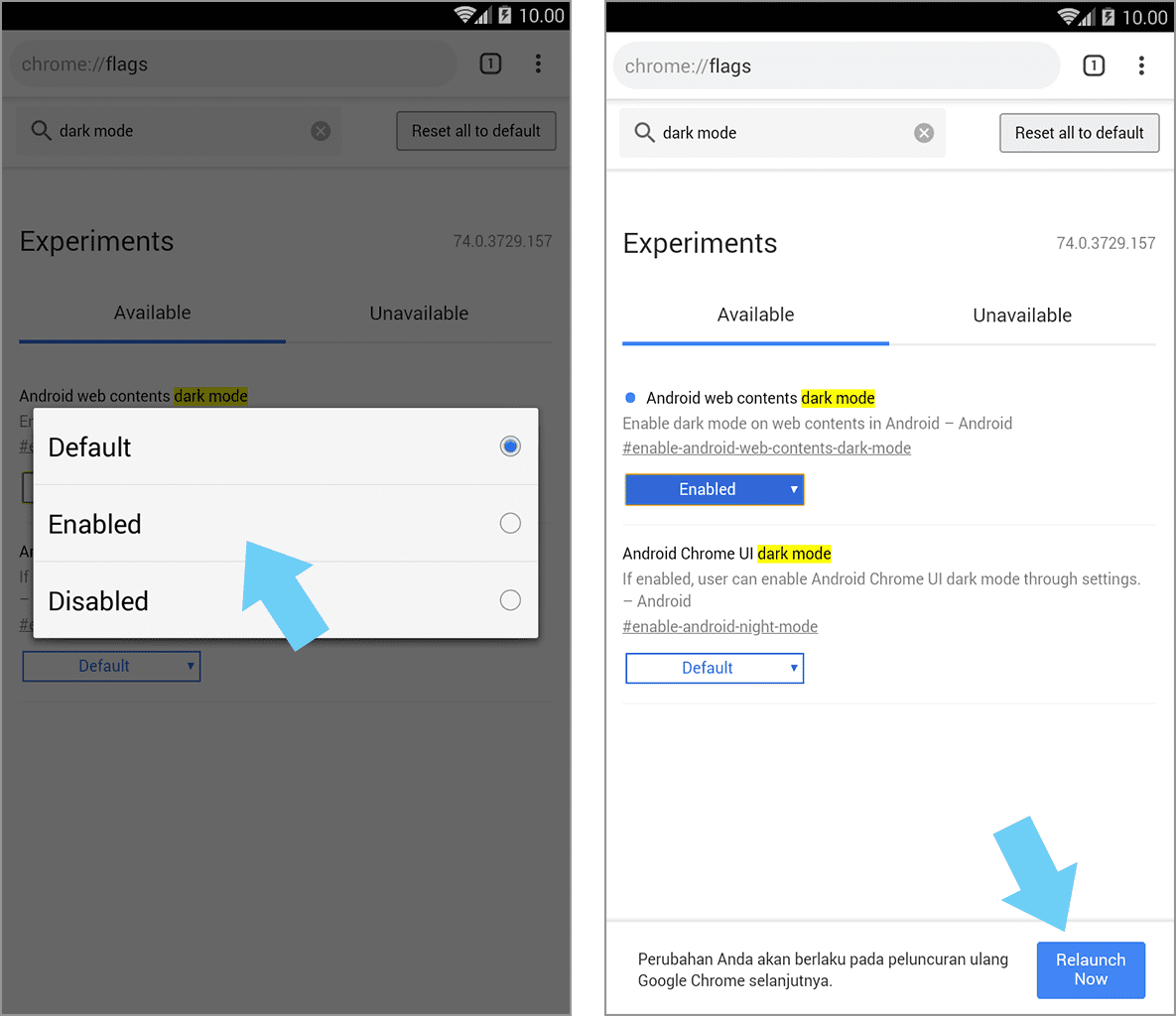 4. Ubah default menjadi enabled.Ā Setelah itu, silakan ketuk relaunch now.Ā