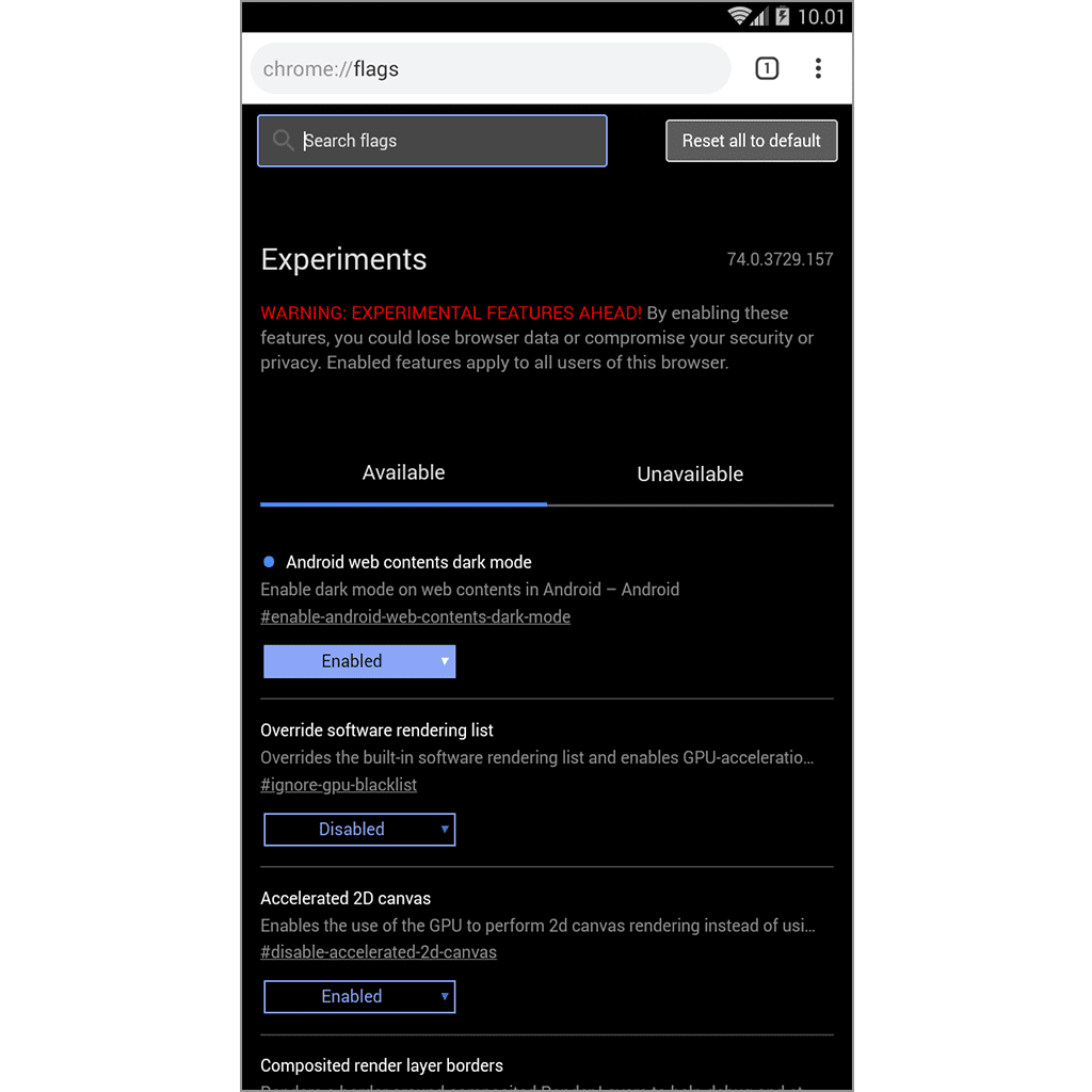Untuk mengaktifkan fiturĀ web content dark mode, kamu harus melakukan pengaturan di chrome flags terlebih dahulu. Chrome flags adalah pengaturan tersembunyi yang bisa kita gunakan untuk menyempurnakan peramban Chrome.