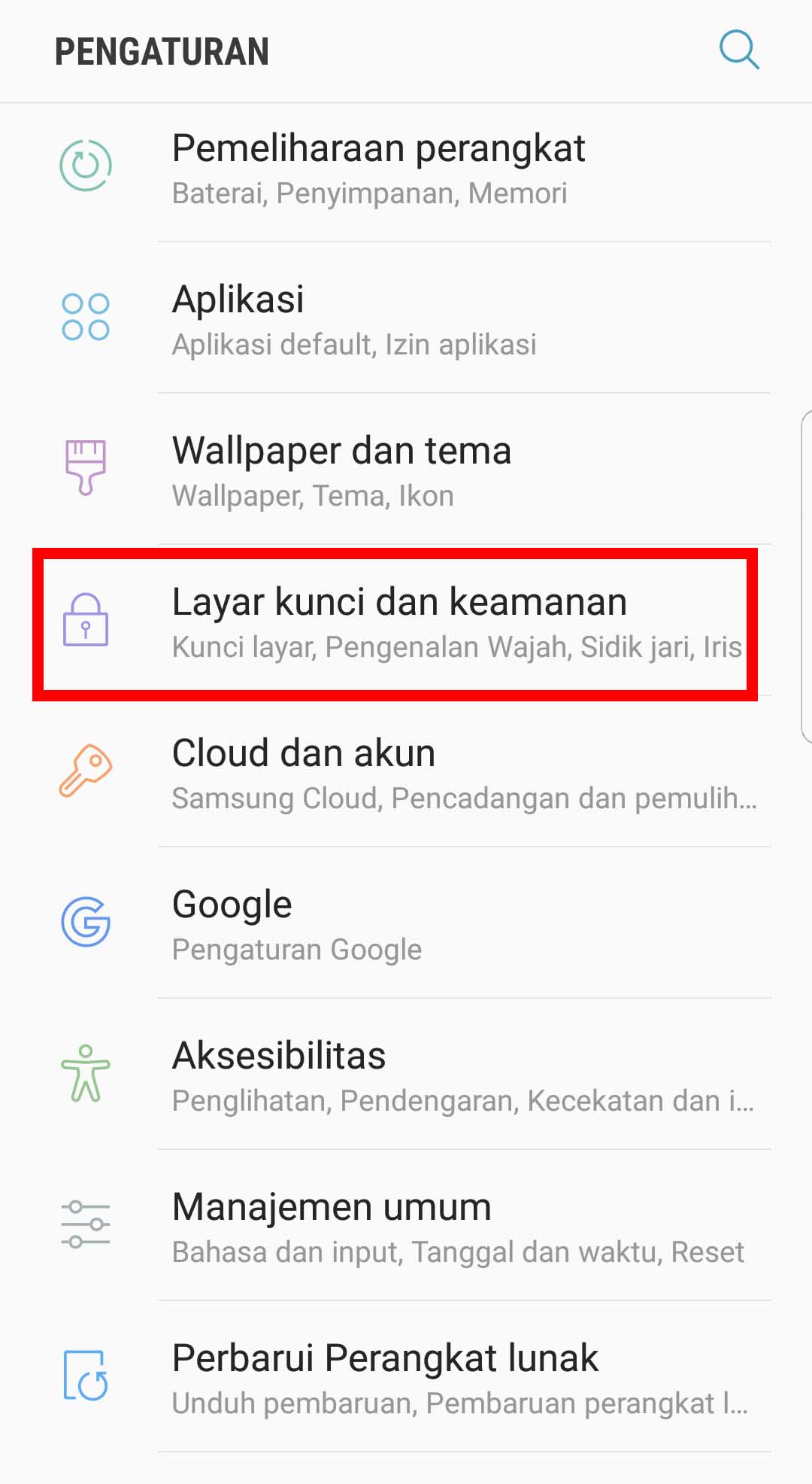 1. Masuk ke pengaturan – Layar kunci dan keamanan.