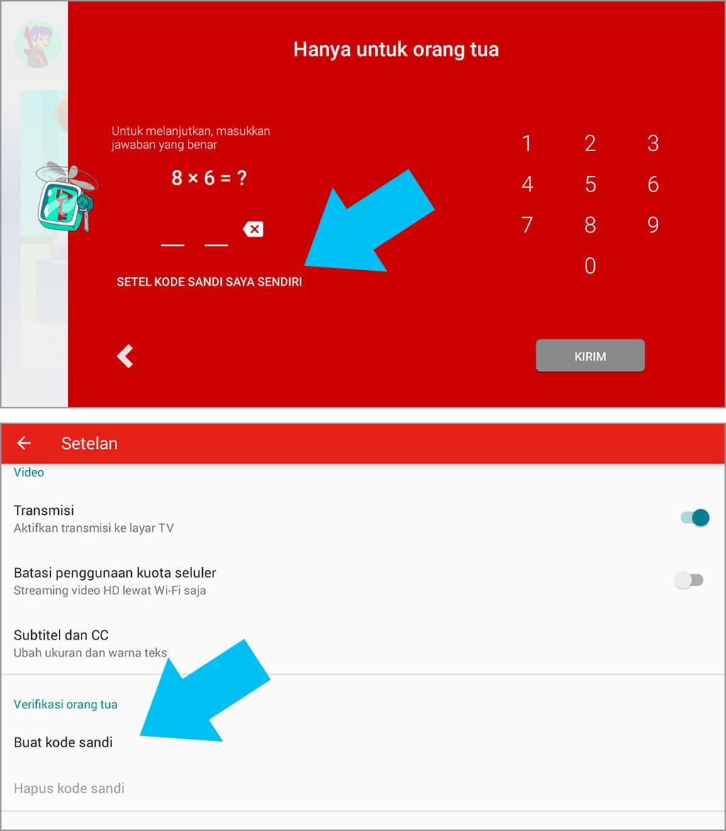 Kamu yang memiliki anak atau adik yang sudah paham perkalian atau yang memiliki kecerdasan di atas anak-anak pada umumnya bisa menggunakan fitur kode sandi ini. Dengan menggunakan kode sandi, menu setelan hanya bisa diakses oleh orang tua yang memegang aplikasi Youtube Kids. Jika kamu tertarik mengaktifkan fitur kode sandi, kamu bisa menyimak tutorialnya di bawah ini.