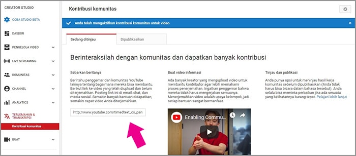 8. Jika kamu sang pemilik video, untuk melihat subtitel dari kontribusi komunitas, silakan klik ditinjau.