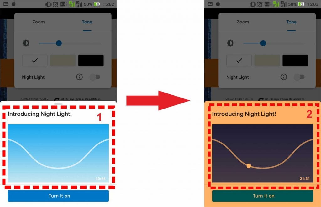 3. Pada pengaturan tersebut didalamnya terdapat fitur night light serta terdapat ilustrasi bagaimana fitur ini bekerja.