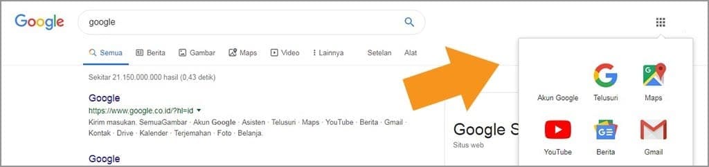 2. Ketika sudah login, silakan klik ikon produk Google, kemudian pilih akun Google.