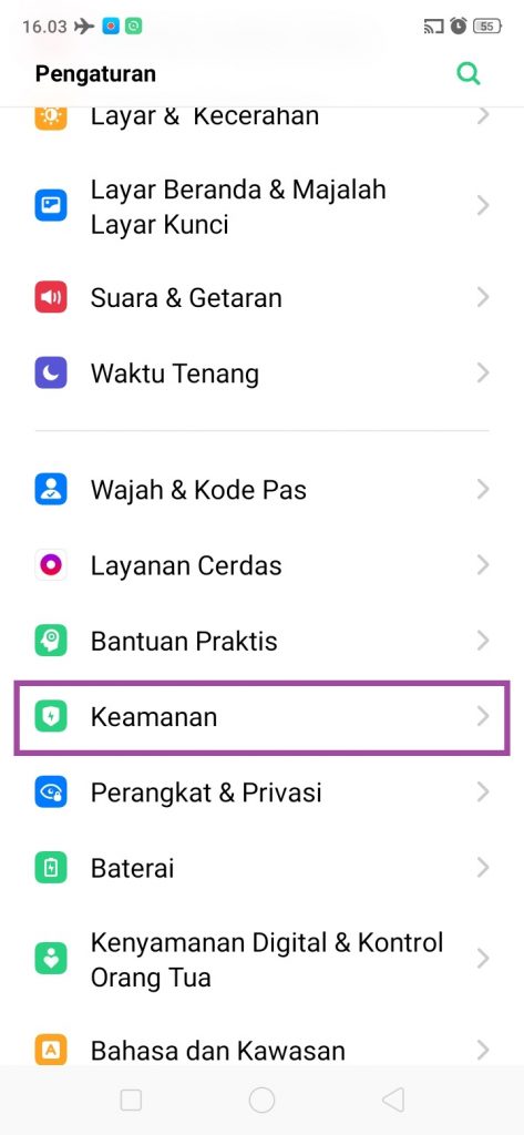2. Cari, dan pilih ‘Keamanan’.