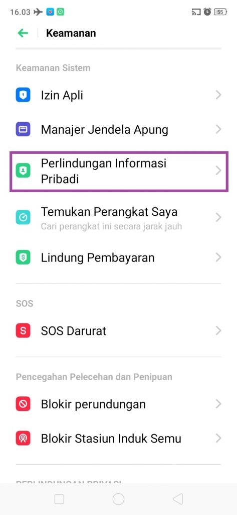 3. Cari, dan pilih ‘Perlindungan Informasi Pribadi’.